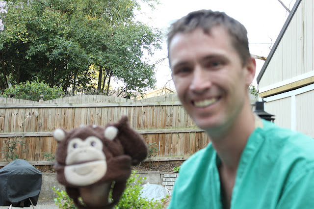 Bad shot Lauren.....here's a more in focus picture of the darling monkey hat for our little monkey to come.